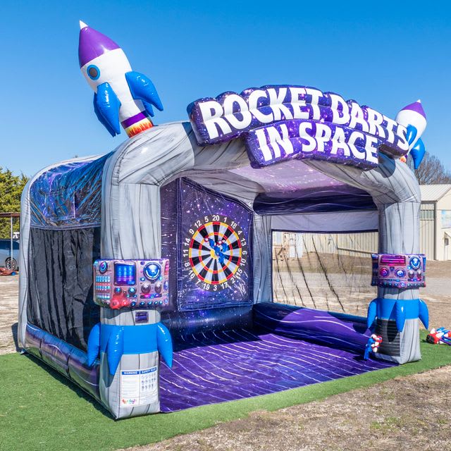 Searching for party rental Rocket Darts In Space in Louisville, Mt.Washington, Shepherdsville, Bardstown, Taylorsville? Our service brings the fun straight to your location! Combine Rocket Darts In Space with other crowd-pleasers like bounce houses, water slides, inflatable obstacle courses, and more. Whether you're organizing a backyard celebration, a school carnival, or a community fair, this inflatable game is guaranteed to keep guests entertained and engaged. 🎉